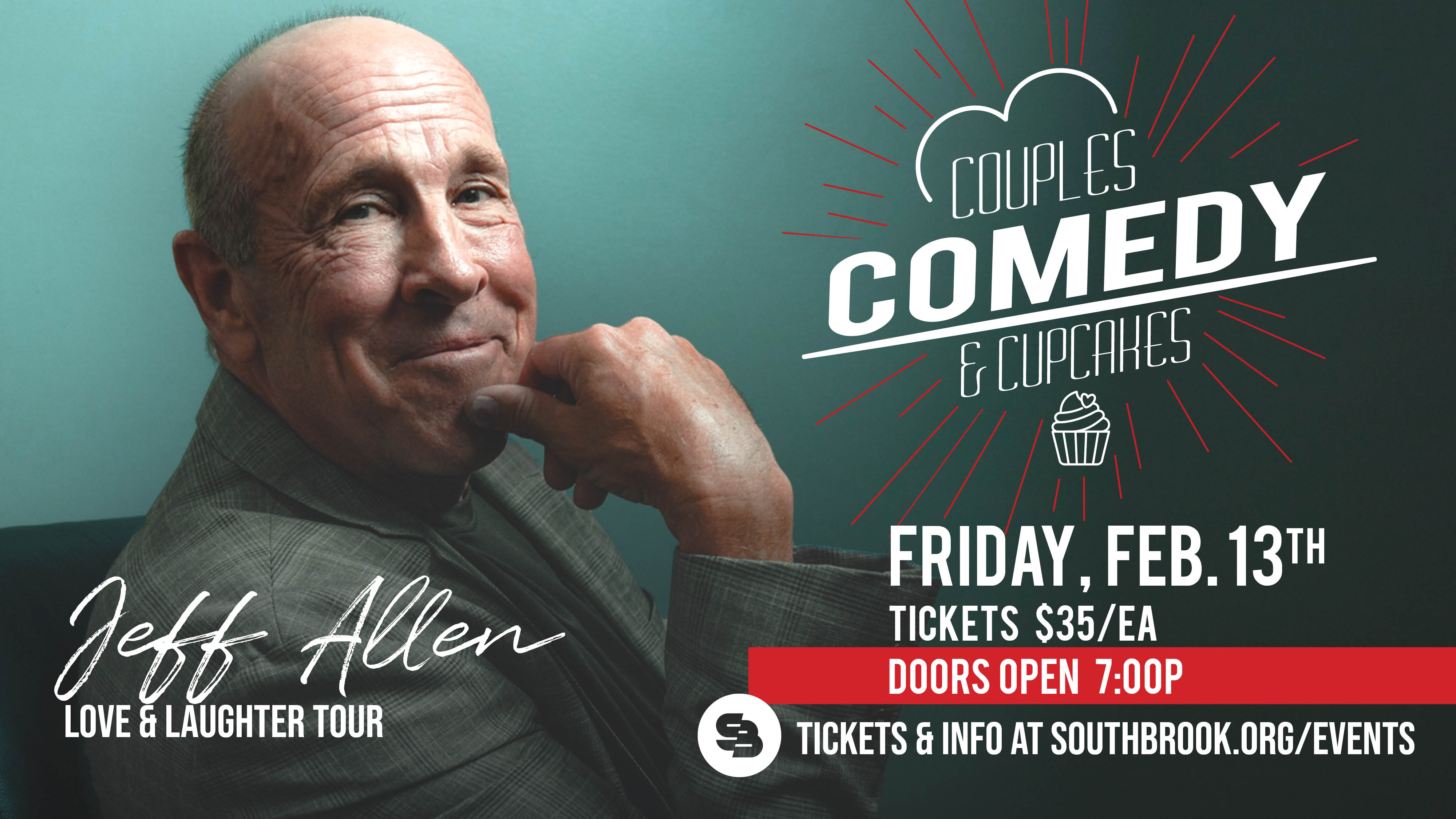 Bring your special someone to SouthBrook on Friday, February 13th at 7pm for some sweet treats and a hilariously good time, featuring comedian Jeff Allen. Tickets are $35 and can be purchased online at eTix - TICKETS ON SALE NOW!